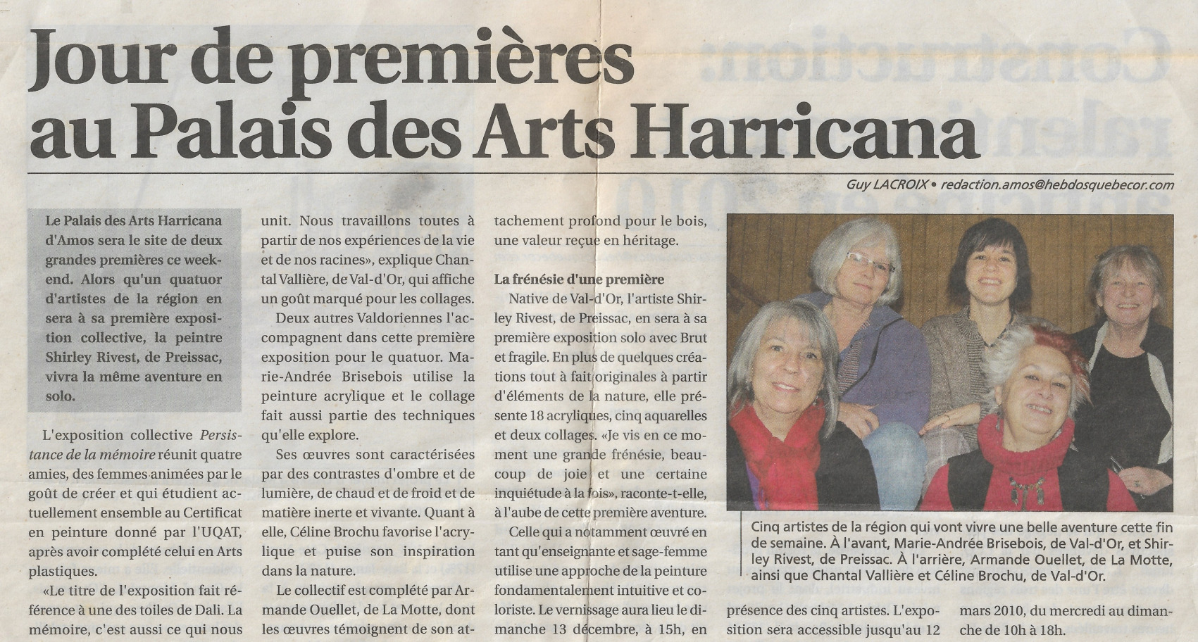 2009, décembre. Le Citoyen, Guy Lacroix, Jour de premières au Palais des arts Harricana